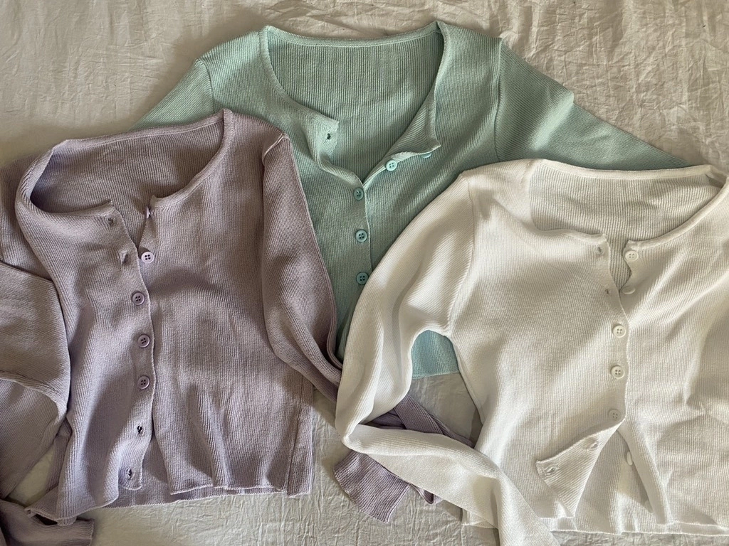 Saquito de hilo crop , con botones, talle único.