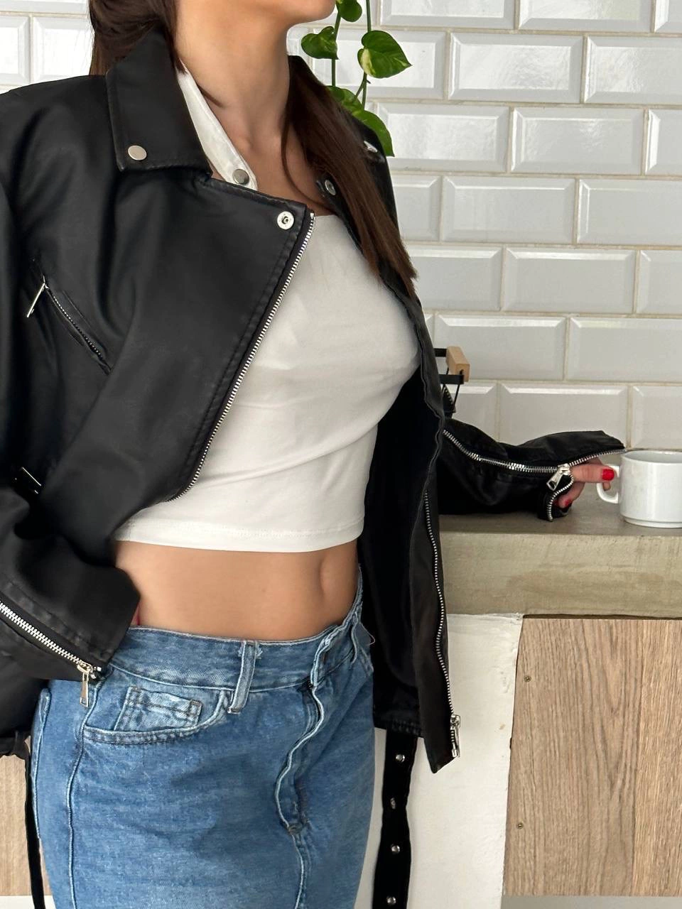Top en modal gamuzada, súper calentito, con cuellito para prender adelante (también se puede usar sin prender, cómo en la tercera foto).