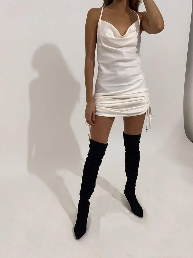 Los vestidos al tener elastico y frunce al costado se adaptan y amoldan muy bien a cada cuerpo. No marcan nada 🤍 Ideales para el oufit de Año nuevo!