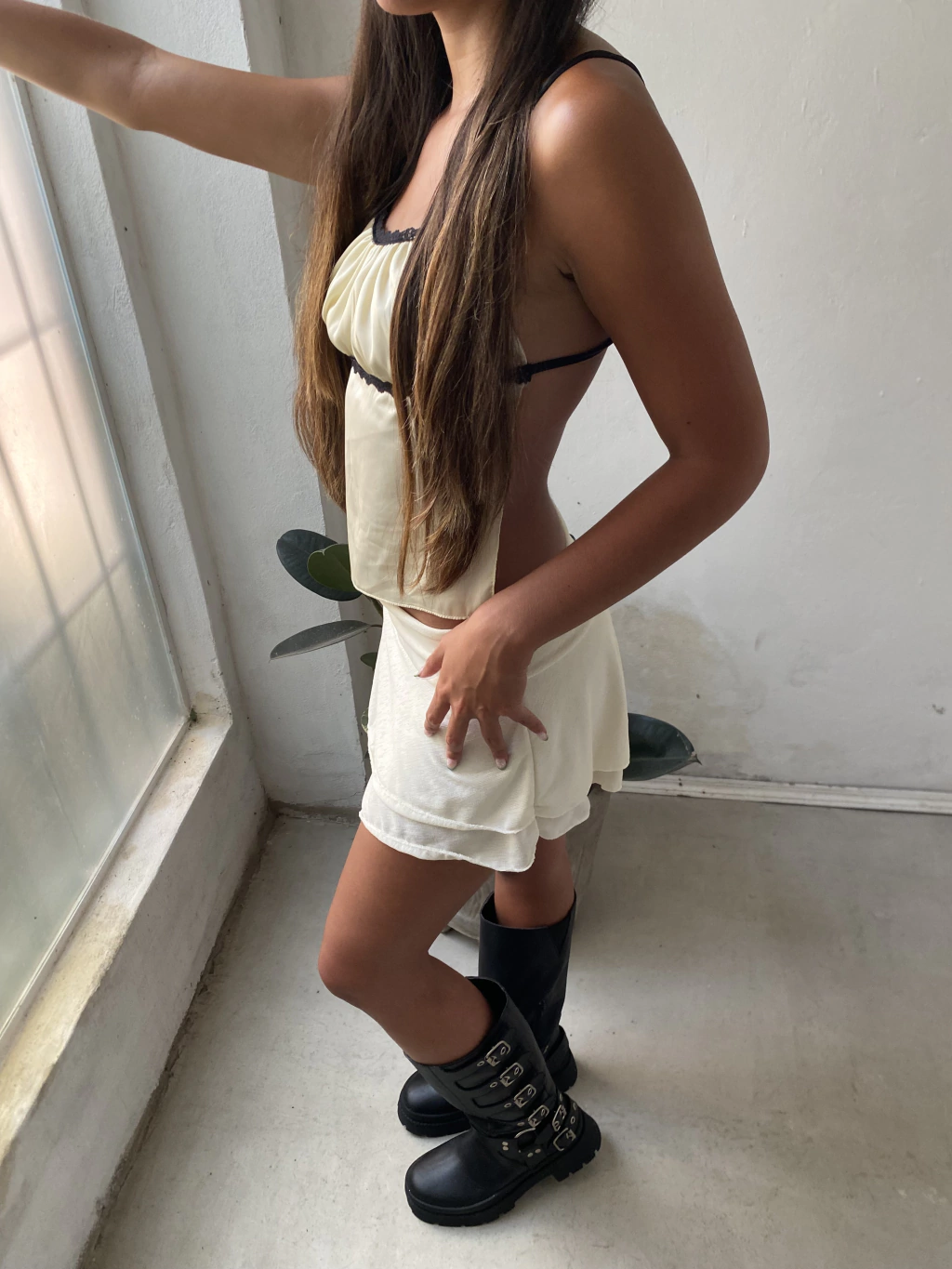 Top de satén con puntillas y tiritas atras.