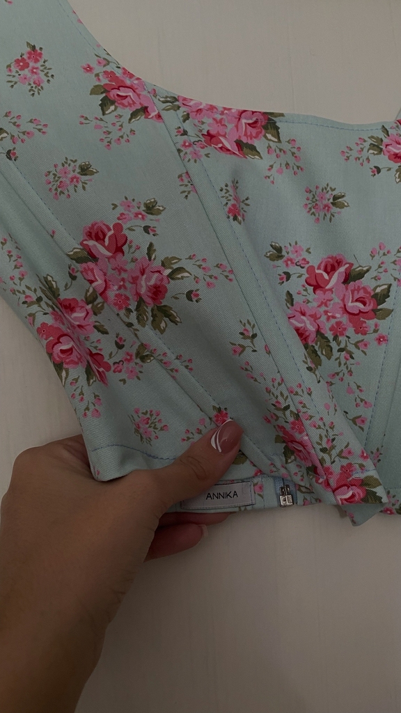 Corset confeccionado con ballenas y cierre en la espalda. De gabardina durita en estampa floreada.